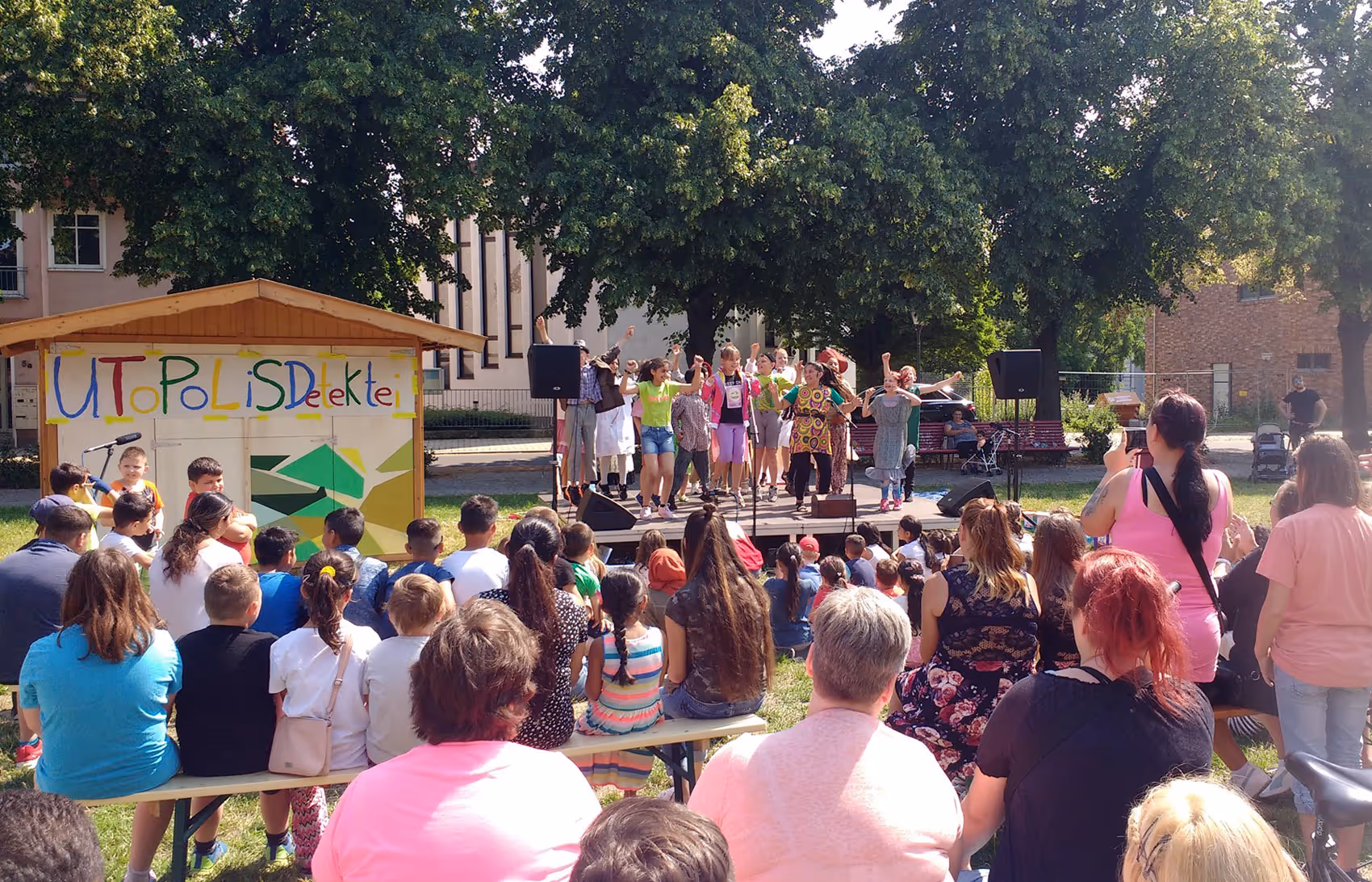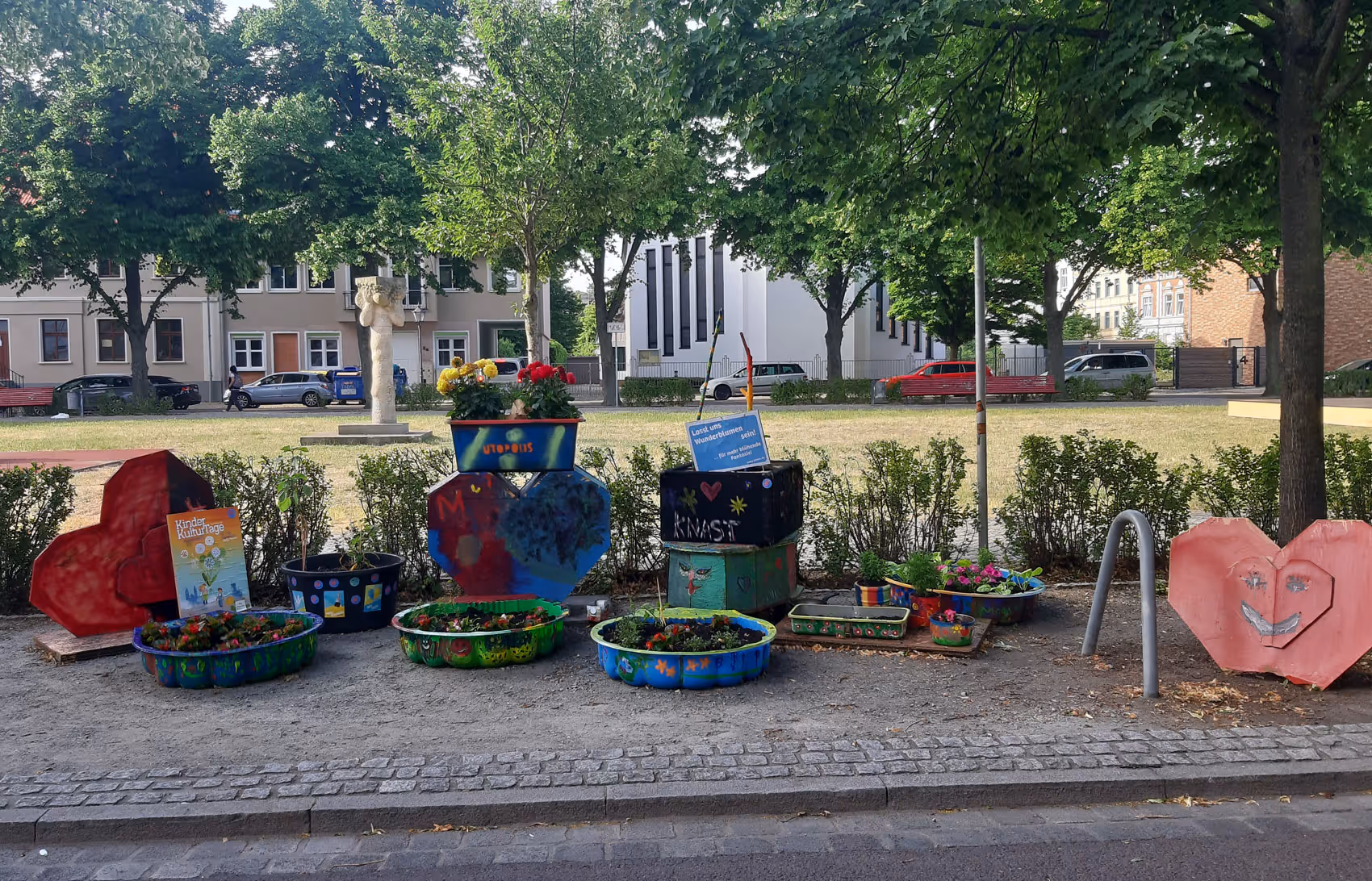Utopolis – das waren kulturelle und künstlerische Angebote, Aktionen und Aktivitäten von und mit Bewohner:innen der Neuen Neustadt. Als Gemeinschaftsprojekt ALLER sollte es Motivation sein, sich den Stadtteil Neue Neustadt mit eigenen Aktivitäten anzueignen. Durch partizipativ konzipierte und durchgeführte Veranstaltungen sollten Vorurteile, Bedenken und Vorbehalte innerhalb der Nachbarschaft abgebaut und ein Miteinander, Gemeinsamkeiten und neues gegenseitiges Vertrauen gewonnen werden.